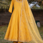 Elevate your ethnic wardrobe with this stunning mustard yellow kurti set that blends timeless elegance with modern charm. The kurti is crafted from a soft, breathable fabric and designed in a flattering A-line silhouette, offering both comfort and effortless style. The neckline is beautifully adorned with intricate embroidery that adds a touch of festive sparkle without overpowering the look.